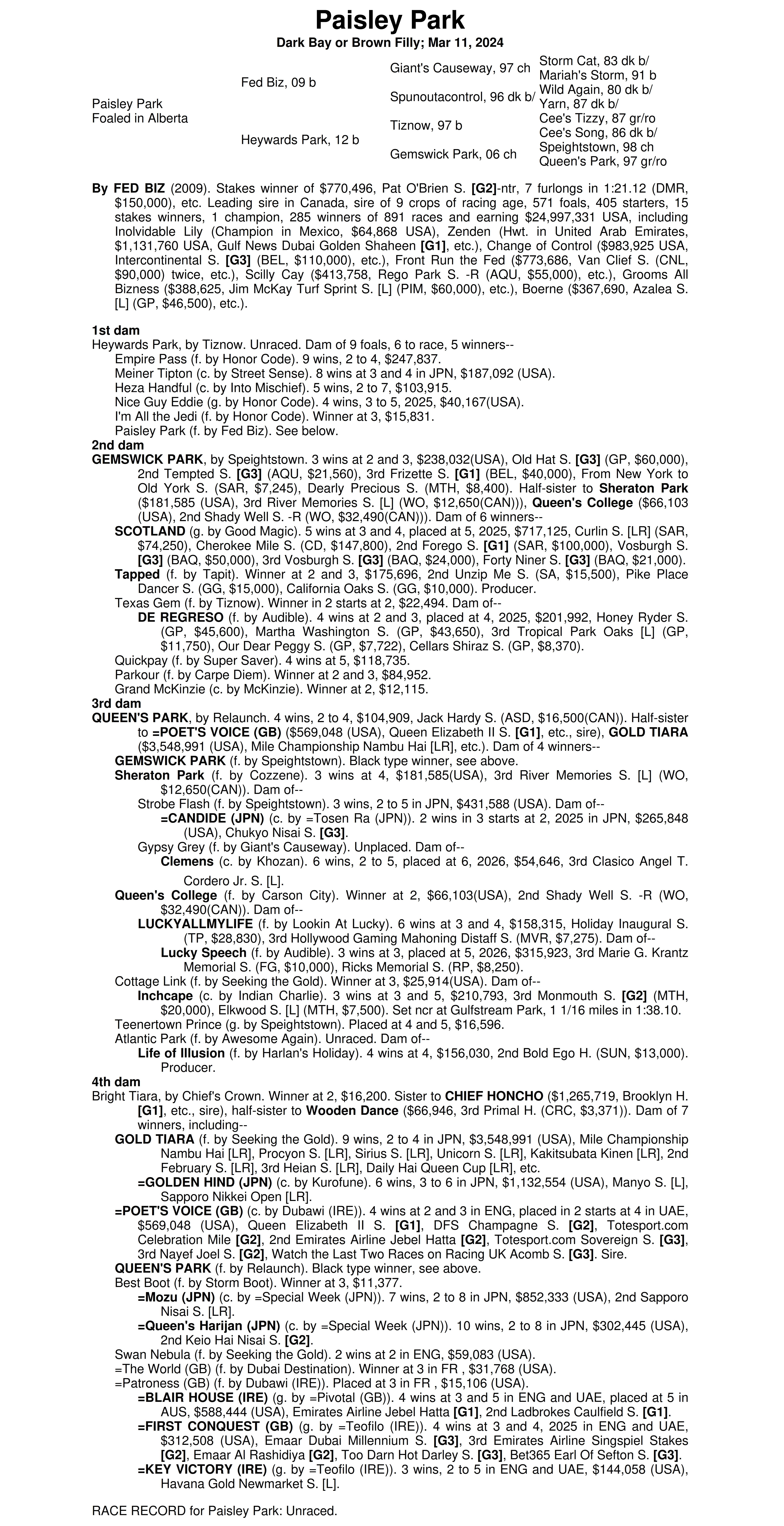 Fed Biz - Heyward Park (Dark Bay or Brown Filly)