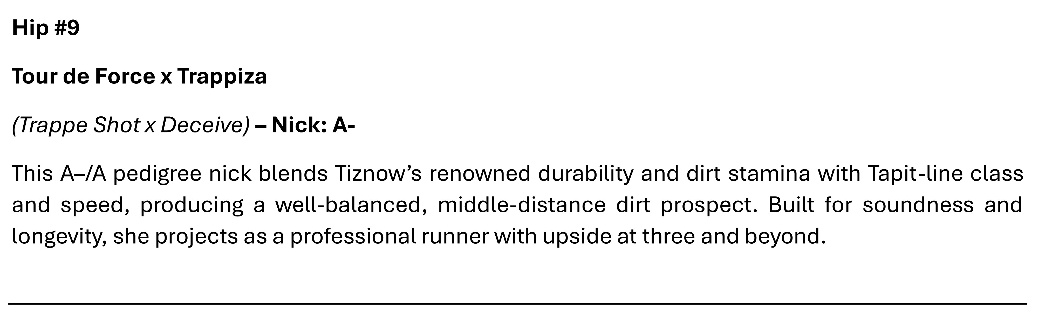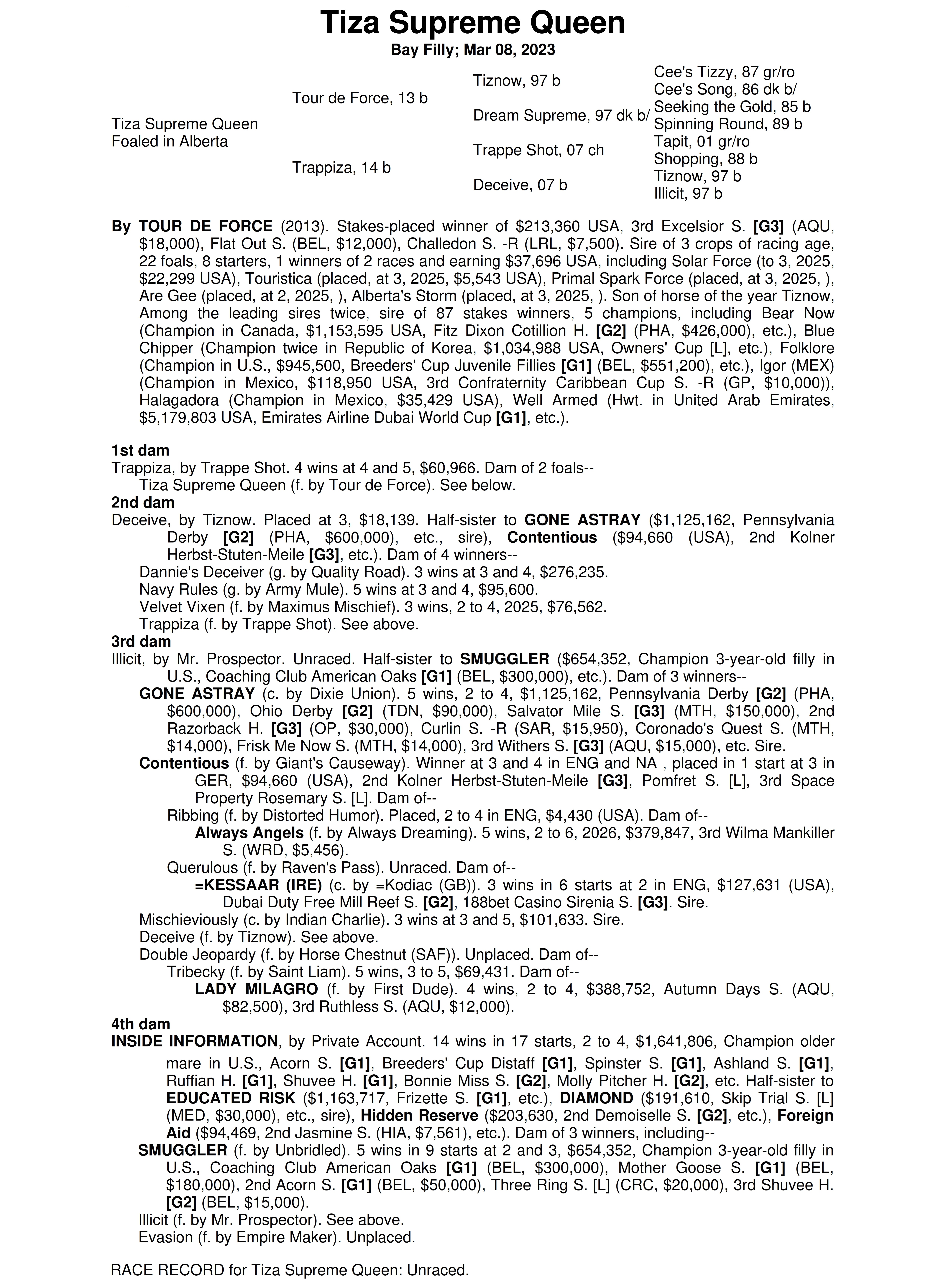 Tour de Force - Trappiza (Bay Filly)