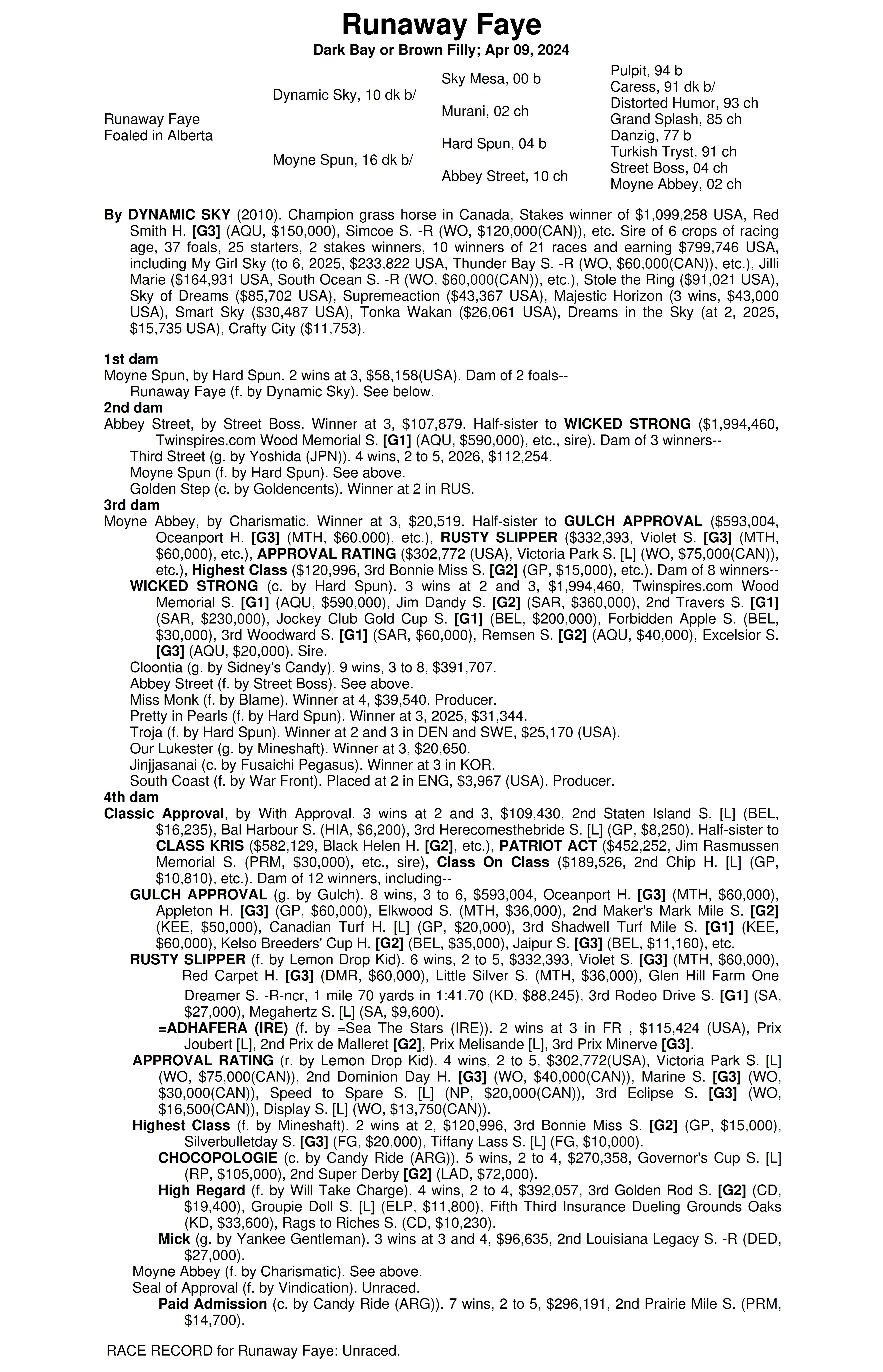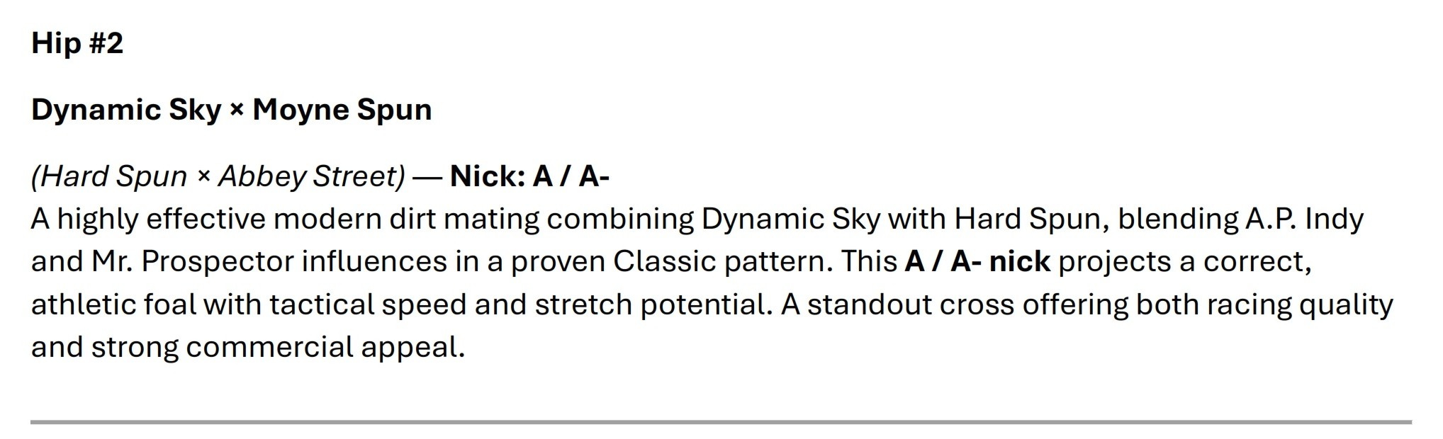 Dynamic Sky - Moyne Spun (Dark Bay or Brown Filly)